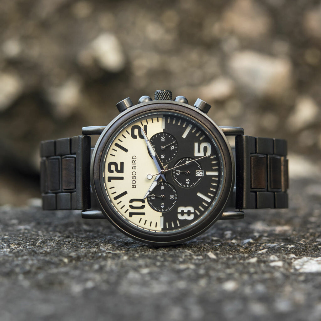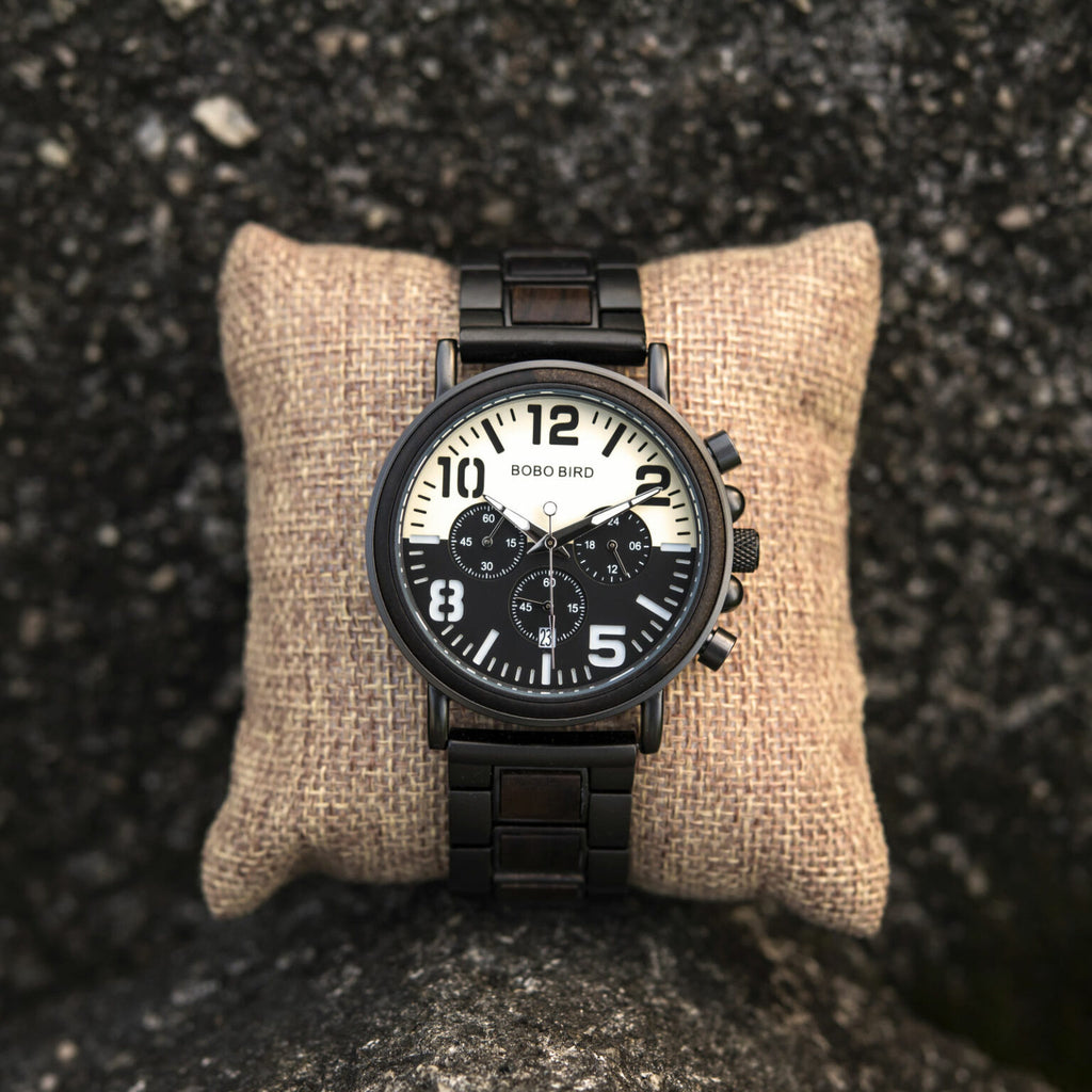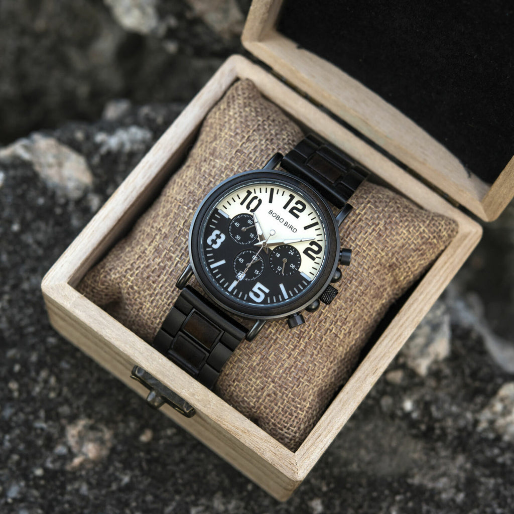 Der Taktgeber ist kein gewöhnlicher Zeitmesser – er ist dein Begleiter. Mit markantem Holzgehäuse, starker Präsenz und klarem Design zeigt er, was zählt: Standfestigkeit, Charakter und Zuverlässigkeit. Ideal für den Mann, der Führung übernimmt und seinen Takt bestimmt – ganz bei sich.