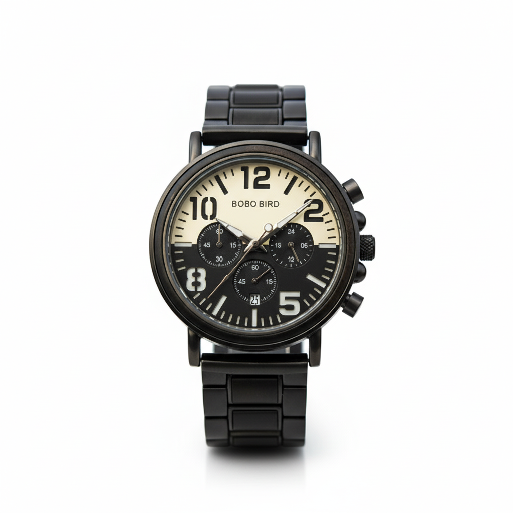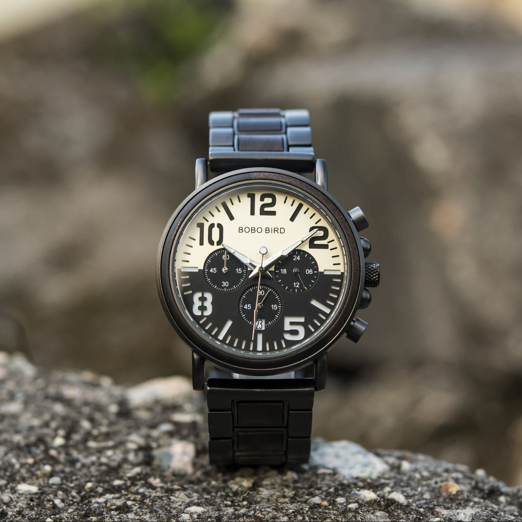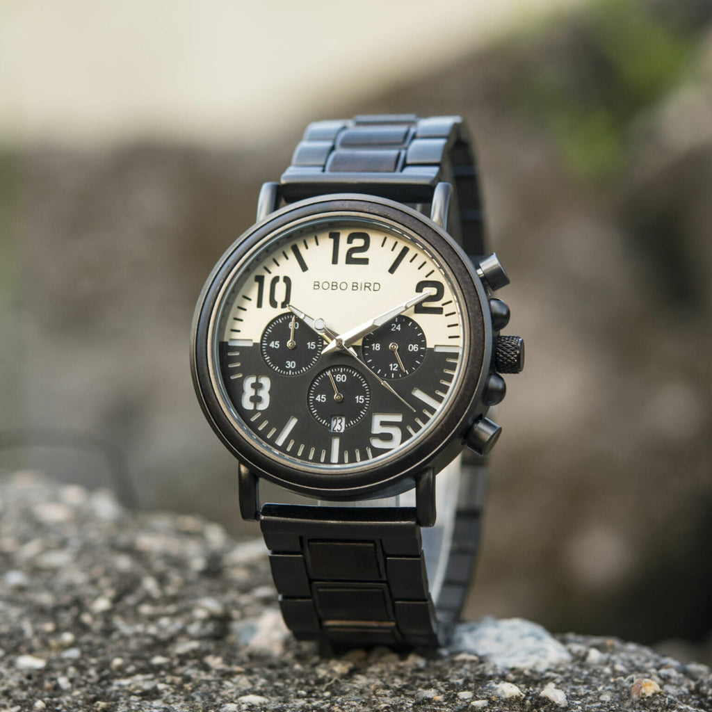 Der Taktgeber ist kein gewöhnlicher Zeitmesser – er ist dein Begleiter. Mit markantem Holzgehäuse, starker Präsenz und klarem Design zeigt er, was zählt: Standfestigkeit, Charakter und Zuverlässigkeit. Ideal für den Mann, der Führung übernimmt und seinen Takt bestimmt – ganz bei sich.