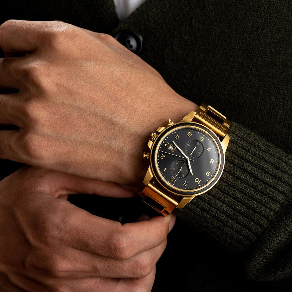 Der Classic Chronograph vereint tiefes Ebenholz mit goldenen Akzenten – kraftvoll, edel, bewusst gestaltet. Die Stoppfunktion verleiht dem Design nicht nur Nutzen, sondern unterstreicht deinen Anspruch an Funktion & Ästhetik. Jede Uhr dieser limitierten Auflage ist ein Statement – für Männer, die Eleganz und Charakter im Alltag spüren wollen.